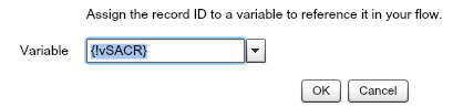 Click OK. Check the box for Assign null to the variable if no records are found. For the Fields, select Id.